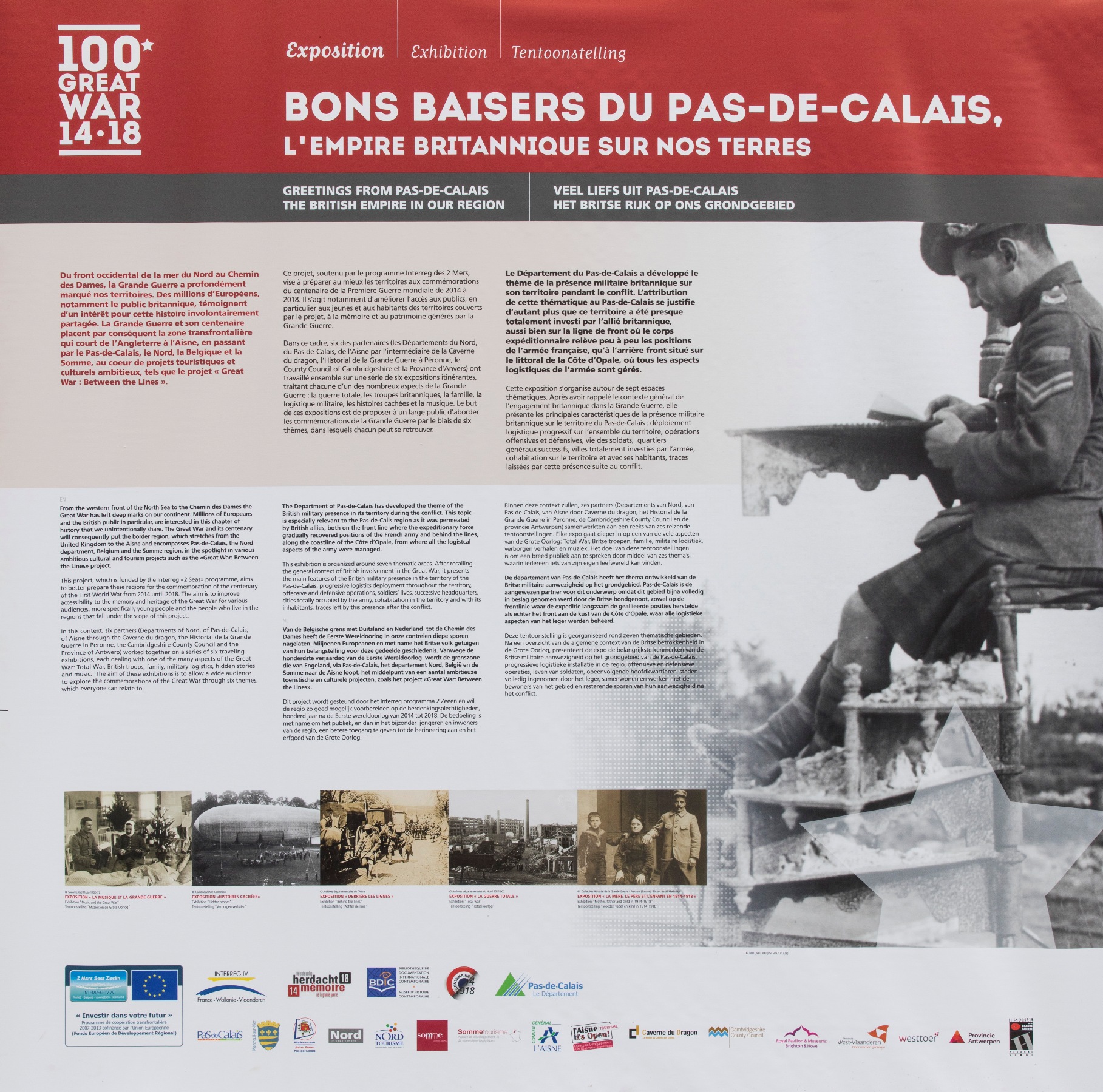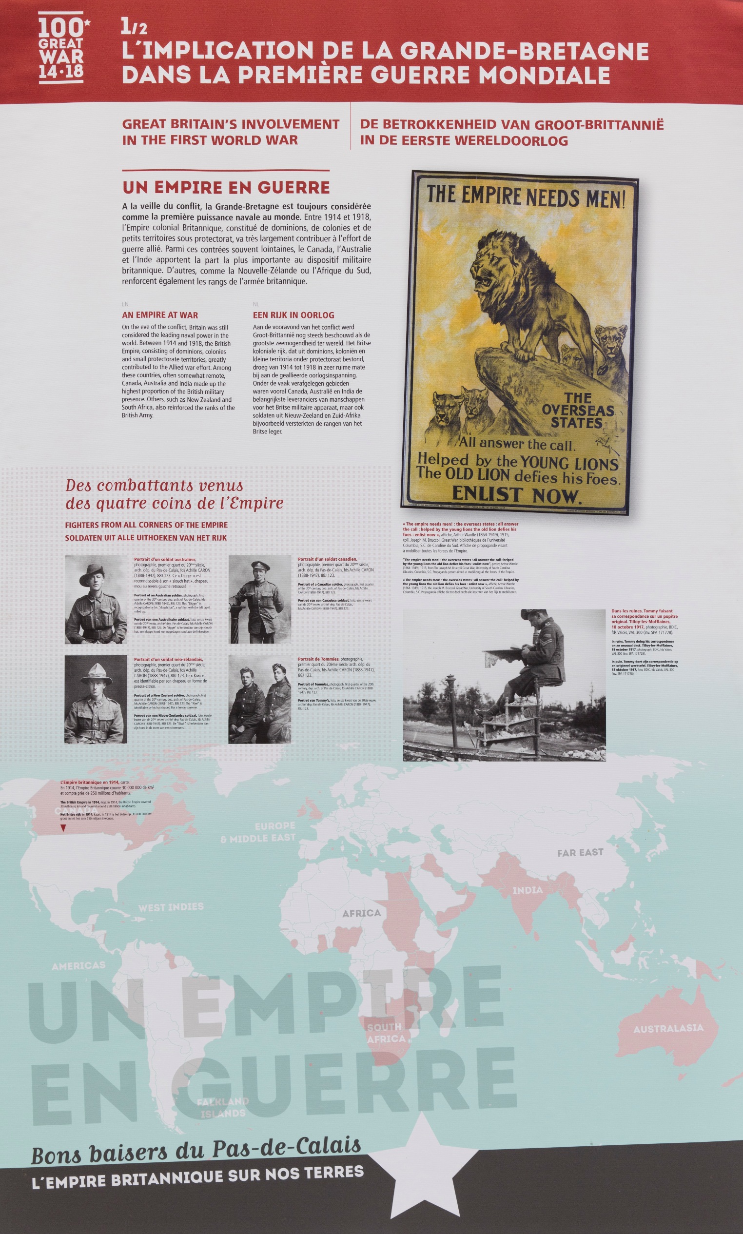 Cette exposition vous fera découvrir comment ces forces se sont déployées, organisées, comment elles ont combattu et vécu sur le territoire du Pas-de-Calais, tout au long des cinquante et un mois de conflit.