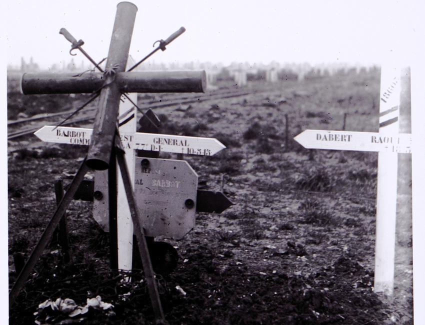 Vue de la tombe du général Barbot au cimetière militaire de Lorette, tirage photographique. Archives départementales du Pas-de-Calais, 4 FI 3558.