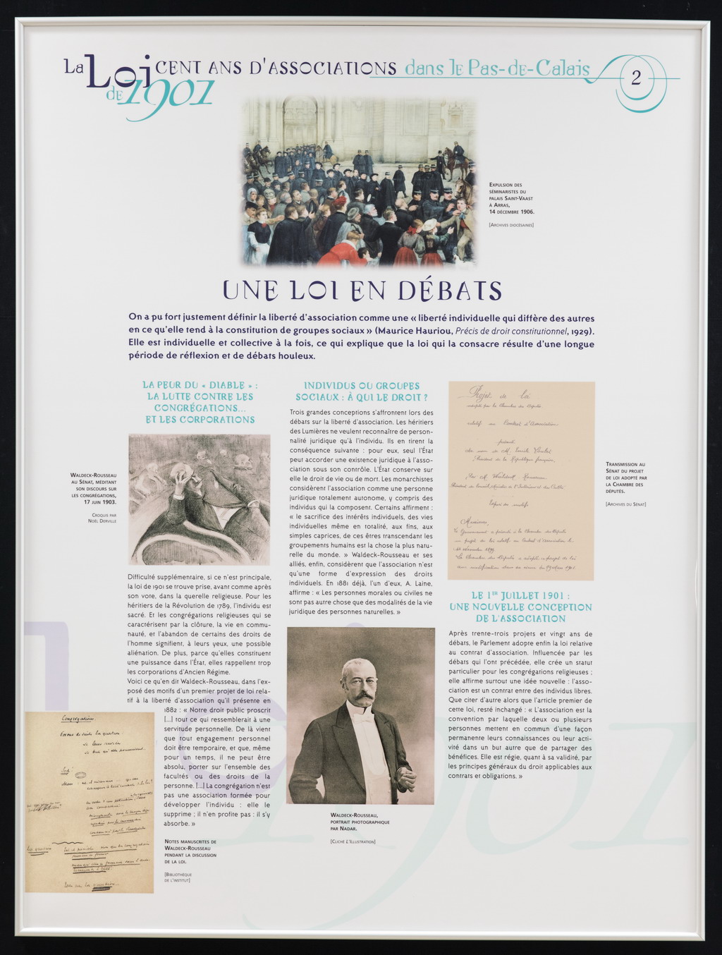 À l'occasion de la célébration du centenaire de la loi de 1901, une plate-forme d'associations a conçu cette exposition itinérante en partenariat avec les archives départementales.