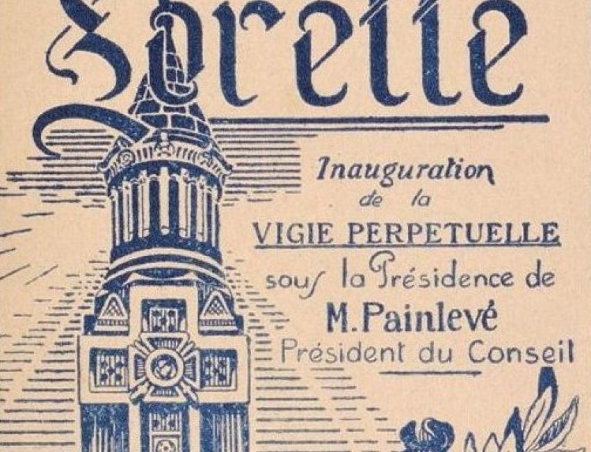 Lorette. Inauguration de la vigie perpétuelle, programme, 2 août 1925. Archives dépatementales du Pas-de-Calais, 42 J 346.