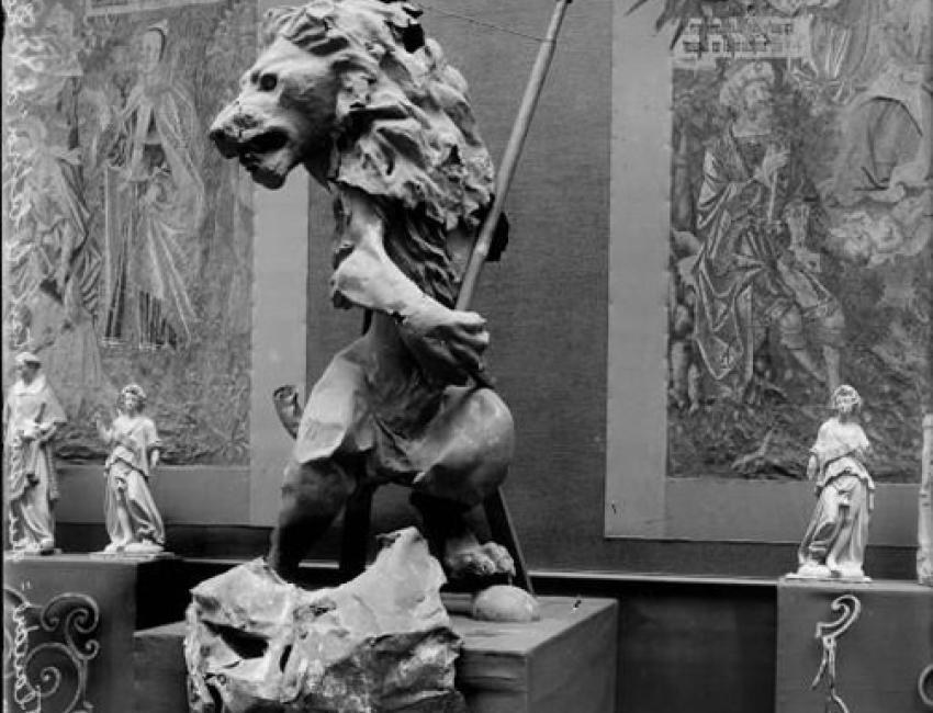 Au Petit Palais, le musée des atrocités allemandes : le lion du beffroi de l’hôtel de ville d’Arras. Photographie de presse/Agence Meurisse. Bibliothèque nationale de France. @Gallica